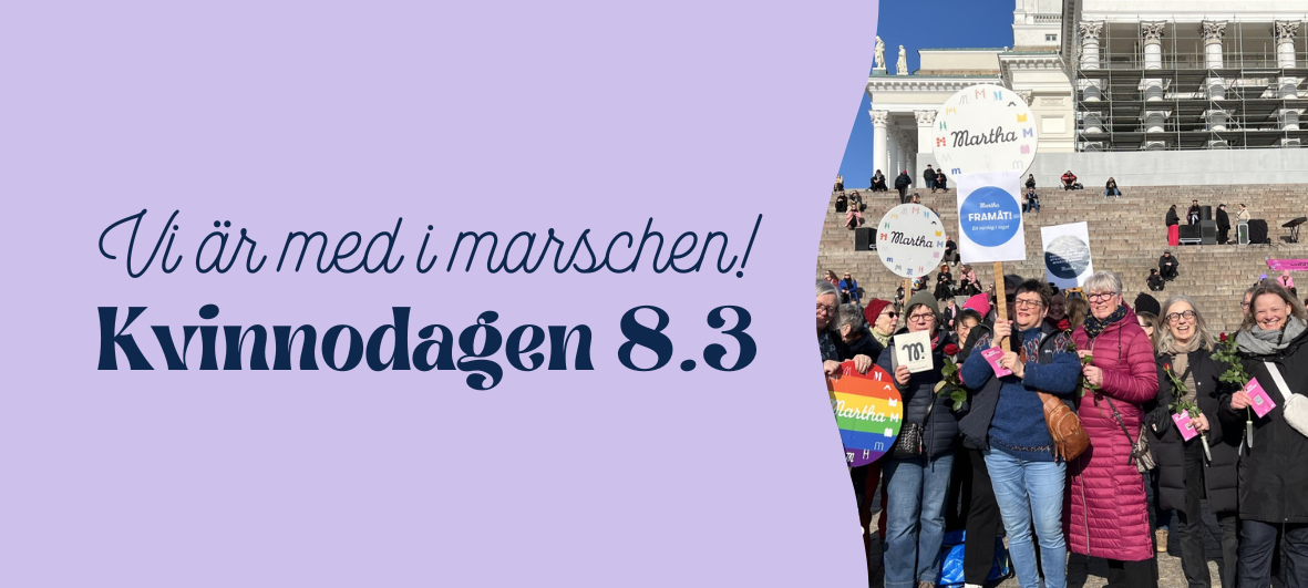 Helsingforsmartha deltar i kvinnodagsmarschen 8.3! Före marschen bjuder Marthaförbundet och Svenska Kvinnoförbundet in dig till en inspirerande kvinnodagsbrunch som hålls i Hemvrån. Vi samlas för en god brunch, gemenskap och samtal innan vi tillsammans går vidare till marschen.