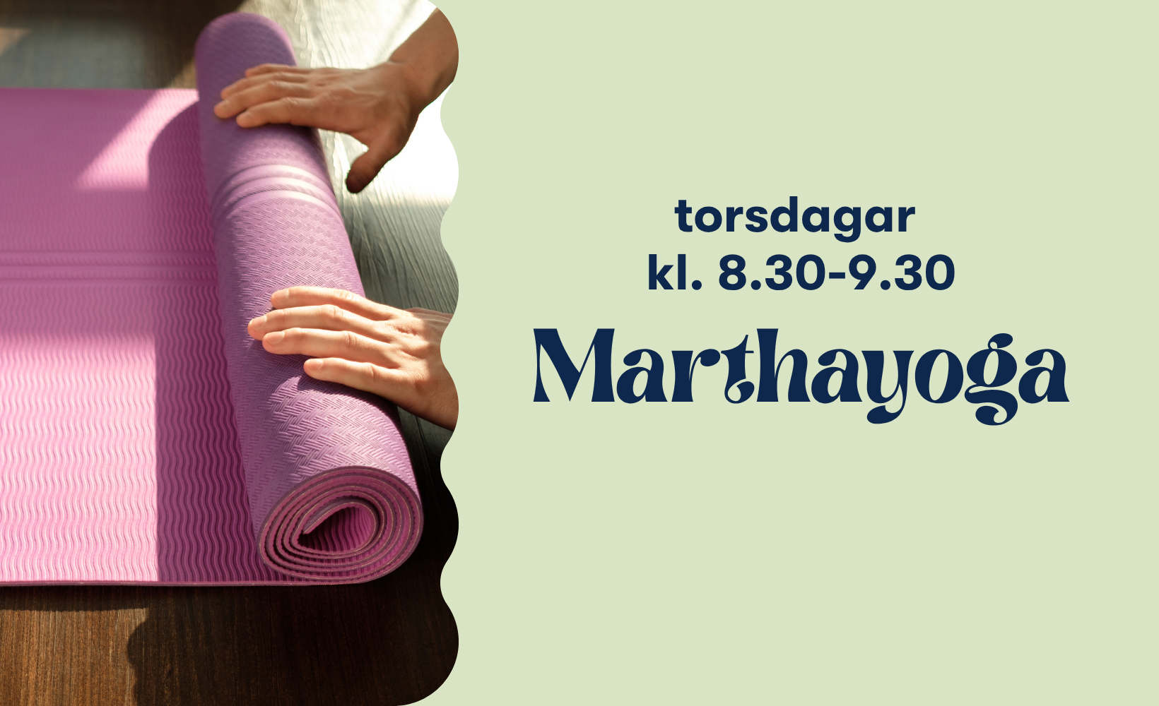 Vi yogar varje torsdag morgon klockan 8.30-9.30 i Hemvrån.
