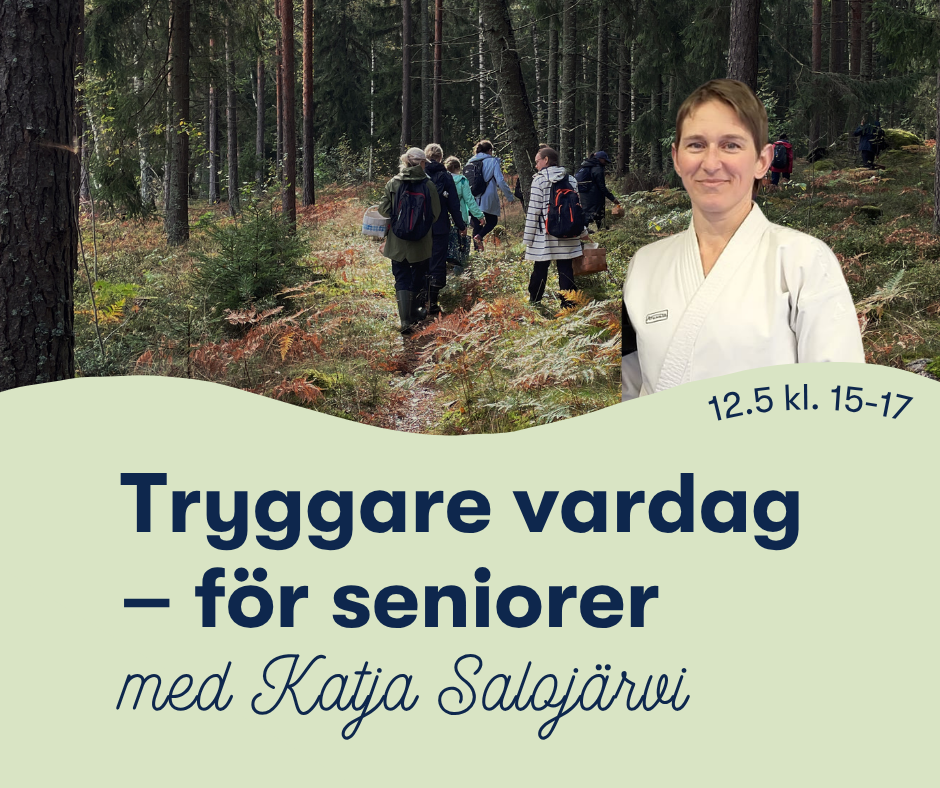 Hej du senior! Välkommen med på en eftermiddag där vi fokuserar på trygghet och självförsvar. Karatetränaren Katja Salojärvi delar med sig av enkla och effektiva tekniker som hjälper dig att hantera ovälkomna situationer, och ger dig konkreta tips som stärker både kroppen och självförtroendet. Vi diskuterar också i vilka situationer vi känner oss otrygga och funderar tillsammans på vad vi kan göra för att vara mera förberedda i vardagen. Den som vill får också öva på att falla rätt.